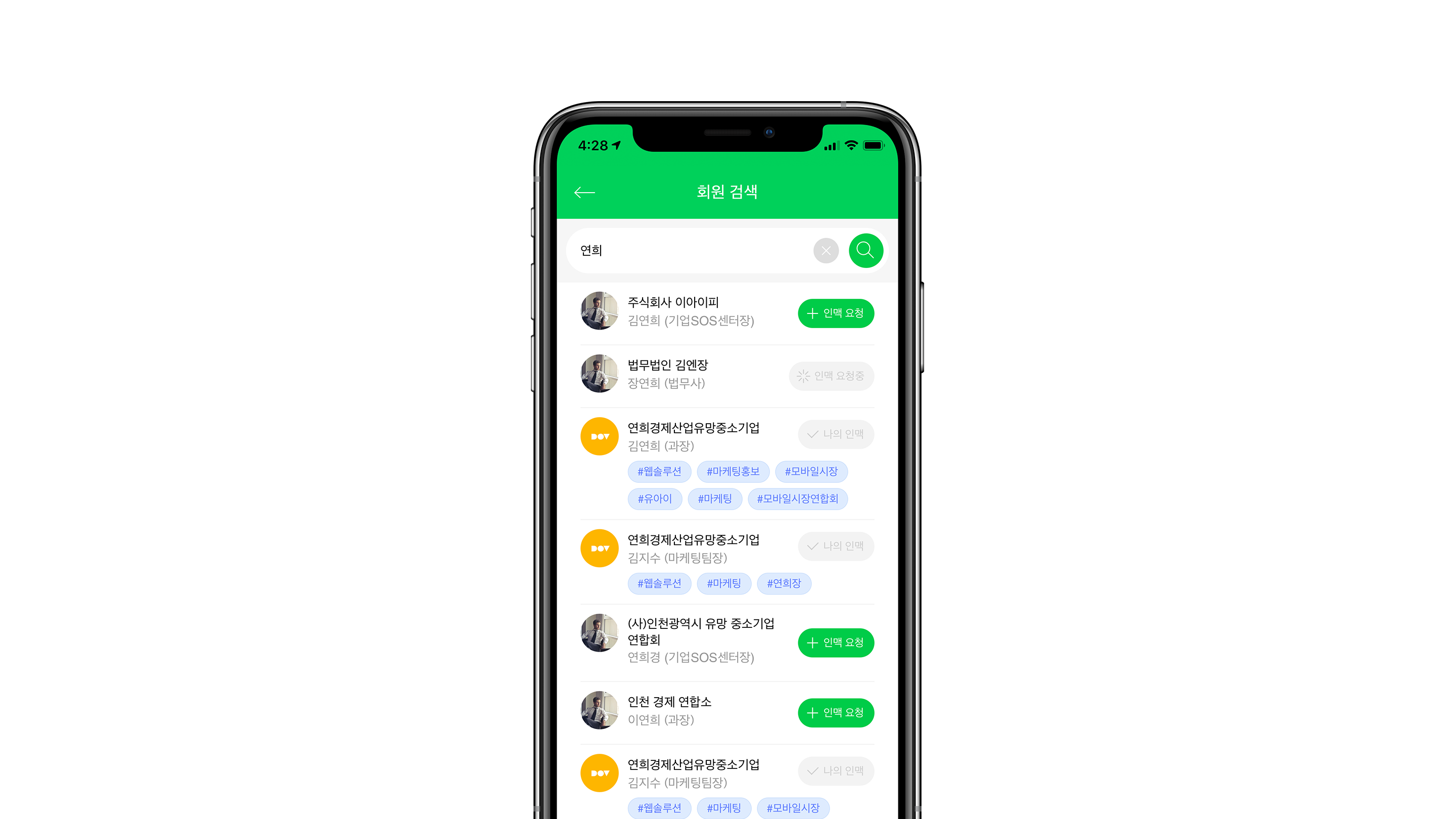 많은 CEO들의 인맥 확장을 위한 인맥 추천 및 사업정보 제공 등 사용자 간 유연한 서비스를 제공합니다.